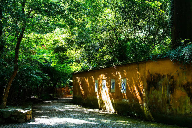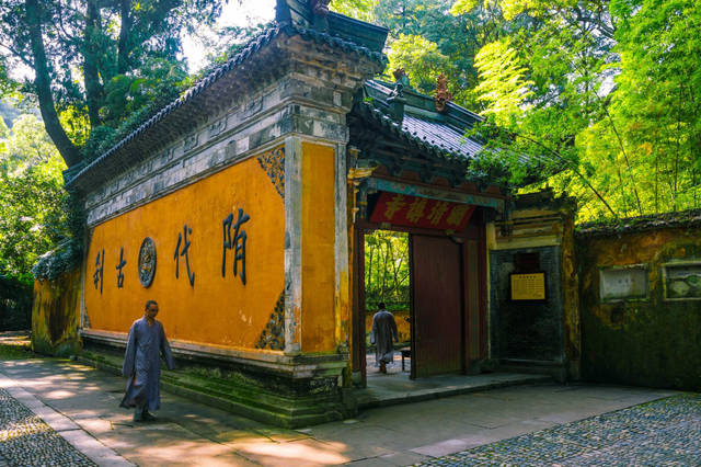 国清寺坐落在天台山南麓的五峰胜境中,所处位置古木森森、溪水回流、环境清幽,一座座黄墙灰瓦的建筑让这里变得格外的肃穆庄严,沿着山间小道走进国清寺,入口处的“教观总持”四个大字格外引人注目,这四个字也代表了国清寺在众多佛教寺院中的地位。