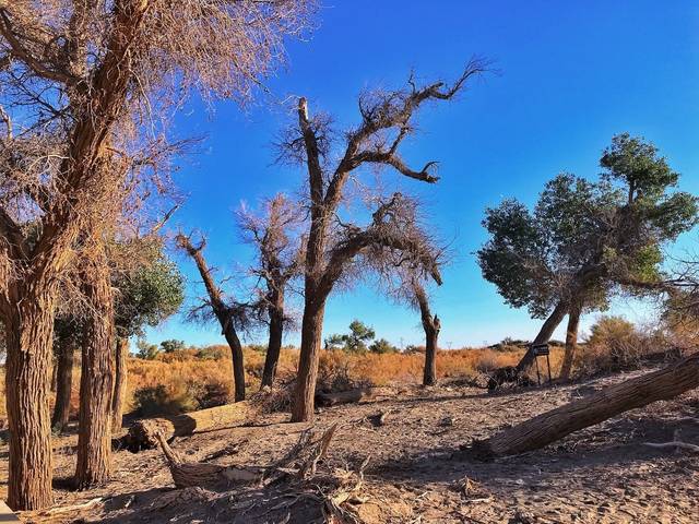 小时候,总是在电视剧里才会看到胡杨林,以至于胡杨林是什么,真的很好奇。刚到大漠胡杨林,远远就可看到顶天立地的胡杨林在阳光下熠熠生辉,金光闪闪。这次大漠之旅,我来到了内蒙古自治区阿拉善盟额济纳旗达来呼布镇,希望能在这个大漠“明珠”上寻找到最美原始胡杨林。