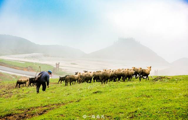 说的是乌蒙大草原,位于六盘水盘州市北部坪地乡与乌蒙镇境内,是我国西南地区海拔最高、面积最大的高原草场,这里经常烟雾缭绕,山头时隐时现,好似人间仙境。