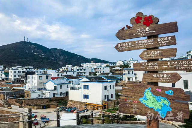 花鸟岛大约有3个多平方公里,是嵊泗列岛中除了本岛以外最大的岛屿,居民世代捕鱼为业,主要集中在码头附近的这个南北海湾,石头的房子就地取材,依山而建,独具渔村特色。