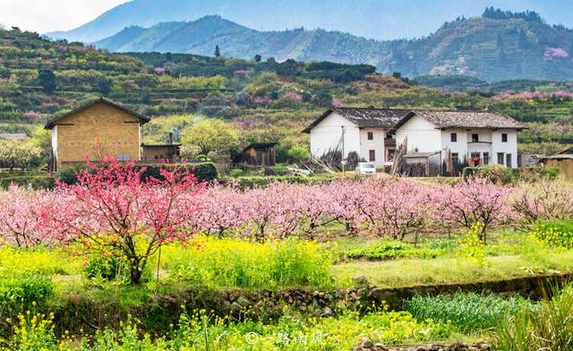 这个乡村一到春天就开满鲜花,满山遍野都是。