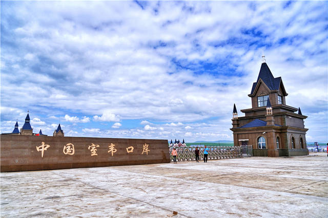 看着眼前的童话城堡在蓝天白云的映衬下,你能想到这里是中国地边境口岸的建筑吗?是的,这里是室韦口岸,位于中俄界河额尔古纳河的中游东端,距离室韦小镇只有半公里距离。