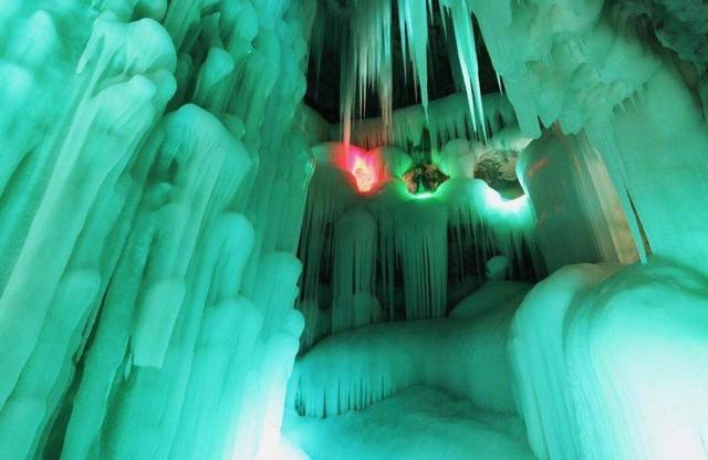 如梦如幻!进入里面,就像走进了一个美轮美奂的水晶宫!100多米高的五层水晶宫,在这里,只能感叹大自然的神奇造化。这里,显然是一个神秘的童话世界!脑海里,总闪现出一个冰美人正缓缓向你走来。