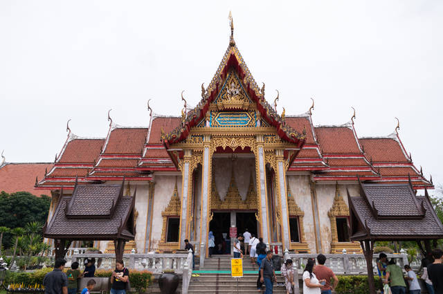普吉岛是泰国著名的旅游胜地,大多数人都是为了这里秀美的沿海风光而来,却忽略了这里的普吉岛上的寺院。普吉岛上有29座寺院,其中规模最大、香火最旺的是“查龙寺”,在普吉岛游玩期间就曾去过这座寺院。