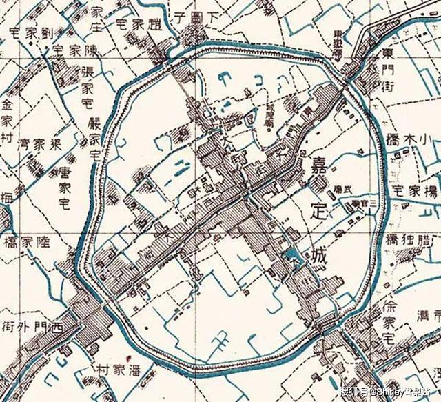 在上海的北郊,有一座嘉定古城,至今已有800多年历史了。老城内,东西向的练祁河、南北向的横沥河与环形的护城河,形成了独特的“十字加环”水系。自古以来,单独的十字水系、环城河并不少见,但是“十字加环”的城市水系却十分罕见!