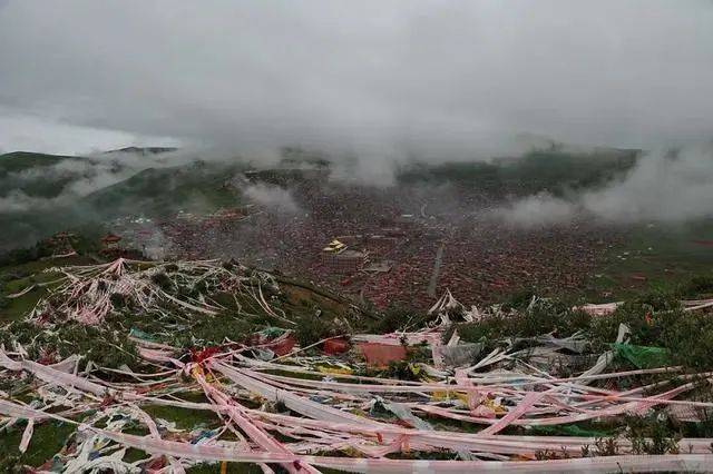 喊小曹,他不起,只好同晓夫出去拍照。沿着上次走过的路,饶过转经塔向后面的山上走去,只见云雾缭绕,整个学院不时略过云雾,非常的漂亮。