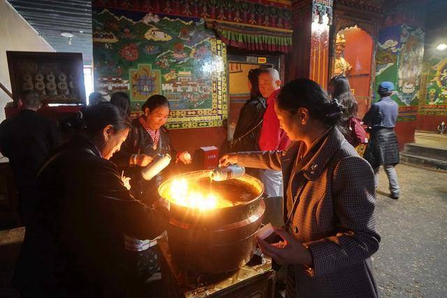 9点钟再次前往昌珠寺,想看看究竟是什么佛事活动,结果又参观了一次昌珠寺。这一天有很多信众到来,他们拎着暖瓶,里面装着酥油,这种油温度低就凝固了,所以装在暖瓶里,给每个佛前的灯都加一点,这也是对佛的最大尊重。