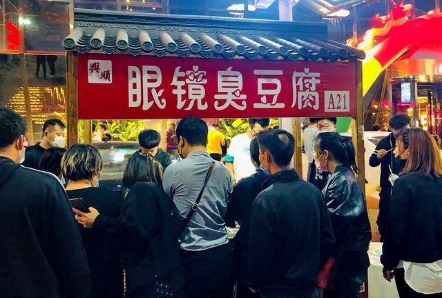 但经营小吃种类很多都是外地的,其中油炸臭豆腐,就有好几家,而且生意特别好,家家摊前都挤满了吃客,以至于这条街除了烤鱿鱼、烤羊肉串,最多的就是臭豆腐,也到处飘着来自长沙的“臭味”。