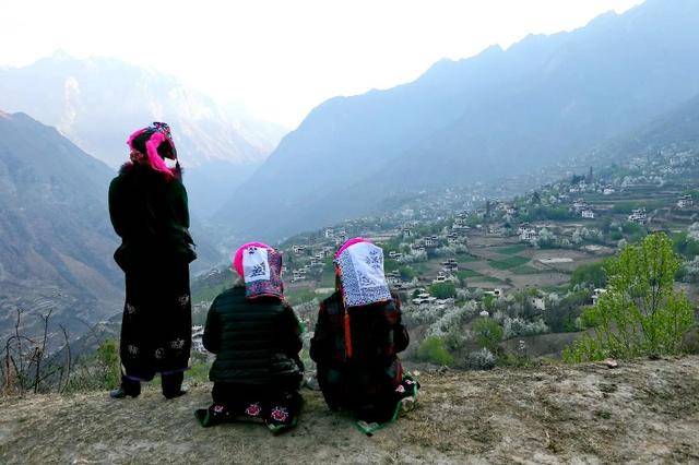 车子最后在一处平台停车,再向上走两百多米就到了,这里可以看得见整个的村寨。