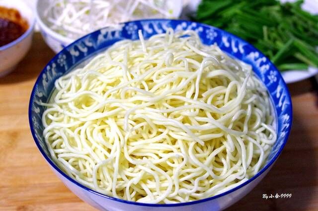 南方的炒面,经常用市场上卖的加了碱,看上去黄橙橙的熟面条。