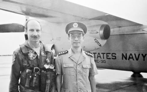 与航母接待军官告别后,我们登上“灰狗”弹射离舰。飞机刚一起飞,骤然而来的加速就让我放在膝盖上的军帽和影集顿时消失得无影无踪。直到飞机着陆后,经过一番寻找,我才终于在机舱尾部发现了它们。