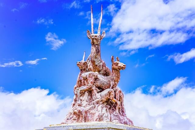 这里还树立着另外一个塑像,那便是可可西里的精灵“藏羚羊”。这种生活在高原的特殊种群,因为其珍贵的价值而成为盗猎分子的首要目标,还好有了像索南达杰这样的英雄一个个站了出来,才让藏羚羊的种群得以延续,而且近五年来已经没有盗猎现象发生了。