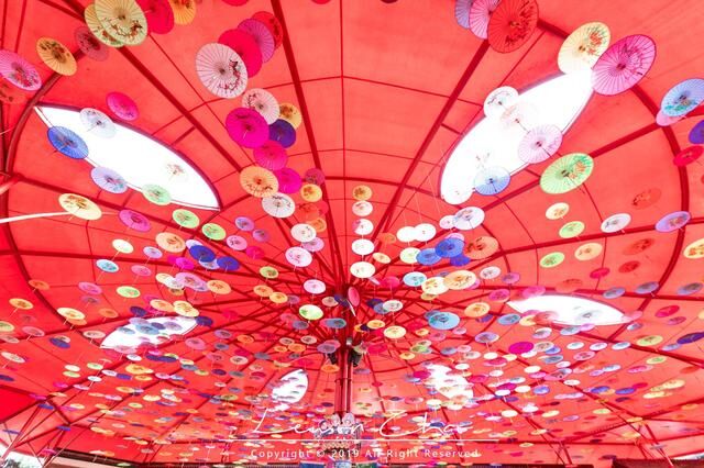 我们此行的第一站便是宋城西街的研学修行。走进大门,穿过一片油纸伞的广场,这里的高空中挂着几百把颜色各异的油纸伞,高高低低地排布绫罗有致煞是好看,冷冷抬头仰望着这些层层叠叠的油纸伞发出啧啧的赞叹声,久久都不肯离去。