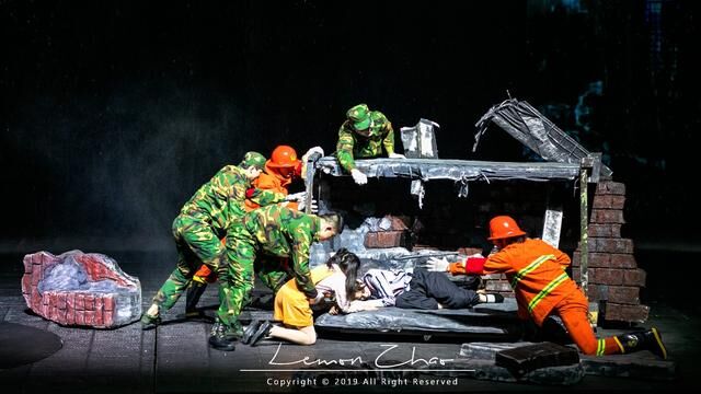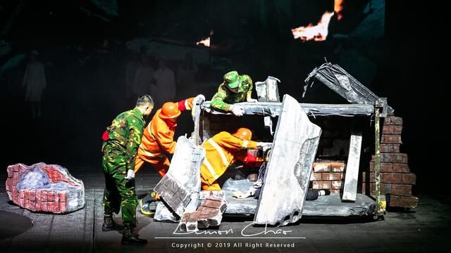 最后全体起立,在各种和烛光中点起了手电筒照亮了黑暗,给了大家心和希望。整个剧目虽然已经落下了帷幕,但是我的心却久久不能平静。泪水已经在眼眶打转,我不知道让我哭的是灾难的无情,还是战士们的英勇,也许都有吧。那些直击人心的画面,我想我这辈子都忘不了。