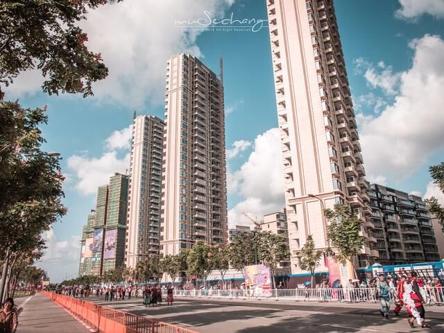 嘉年华的举办地点是在宁波的江北区的一条很宽阔的道路上,旁边还有很多刚刚修起来的小区