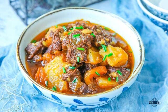 所以,今天小厨给大家推荐的是番茄土豆炖牛腩,牛肉虽然比猪肉贵,但也比猪肉好吃多了。也更适合我们的人体,牛肉营养丰富,是每天所需要的铁质的最佳来源,而铁是造血所必需的元素,而牛肉中富含大量的铁,多食用牛肉有助于补血,尤其是经常贫血的人更多吃一些牛肉是非常不错的哟。眼下牛腩30块钱一斤,其实比猪肉也没贵多少,现在猪肉的价格是越来越贵了。不妨经常吃点牛肉哟。