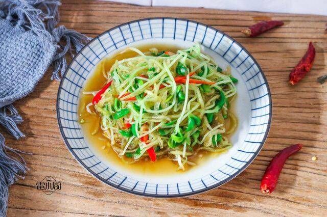 食材:西瓜皮,豆芽,小米椒,大蒜,生抽,陈醋,麻油,白糖,